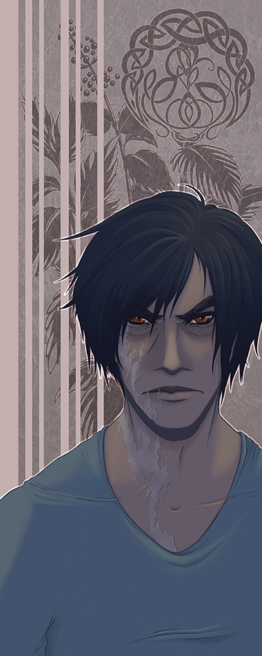 Ishmail a beaucoup évolué au niveau de son physique. S’il avait déjà une cicatrice sur la joue dès les premiers concepts (pour le style on vous dit !), celle-ci a pris beaucoup plus d’ampleur au fur et à mesure que je le faisais évoluer jusqu’à devenir un des premiers mystères à résoudre pour Micaiah (et pour en savoir l’origine, rendez-vous dans le tome 2 !). Résultat, il garde des mèches longues, la cachant (même si pas entièrement), comme ne l’assumant pas complètement ou est-ce par souci de ne pas importuner les autres avec cette disgrâce à regarder ? Je vous laisserai juge.